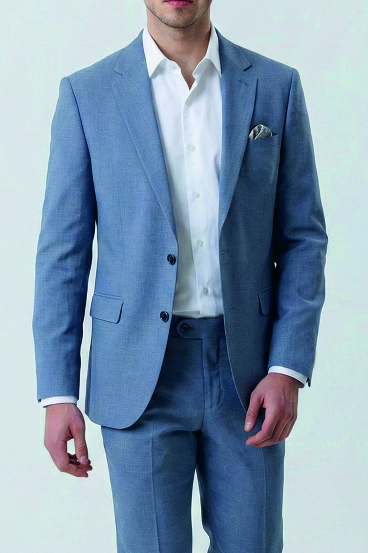 חליפת Mix&Match בשני חלקים, מסדרת CEREMONY. גזרת Slim, בד עשוי תערובת פוליאסטר, ויסקוזה וספנדקס בצבע תכלת.