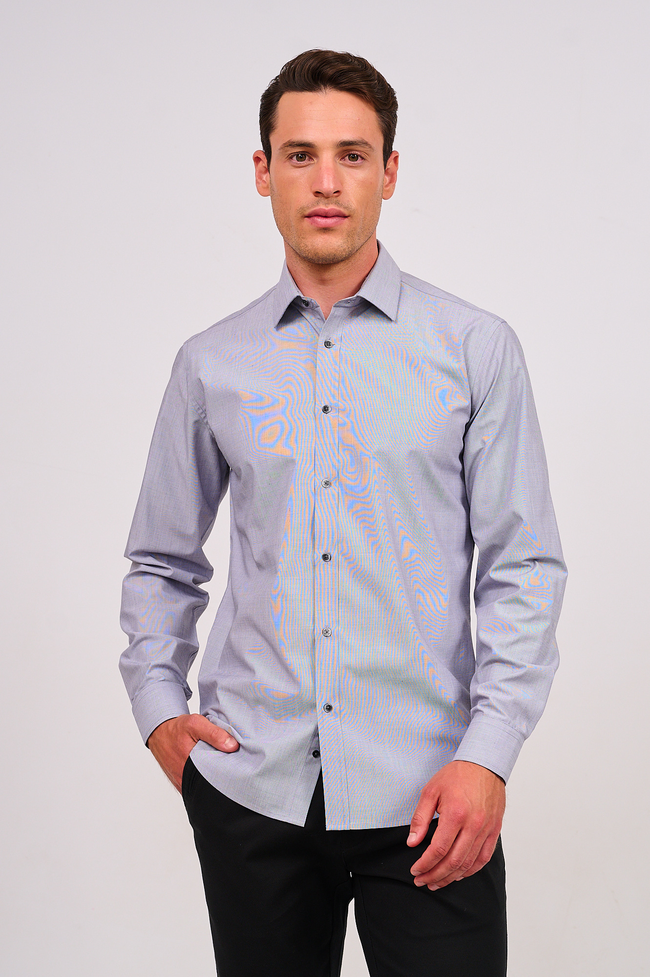 חולצה במבוק Slim – אפור בהיר