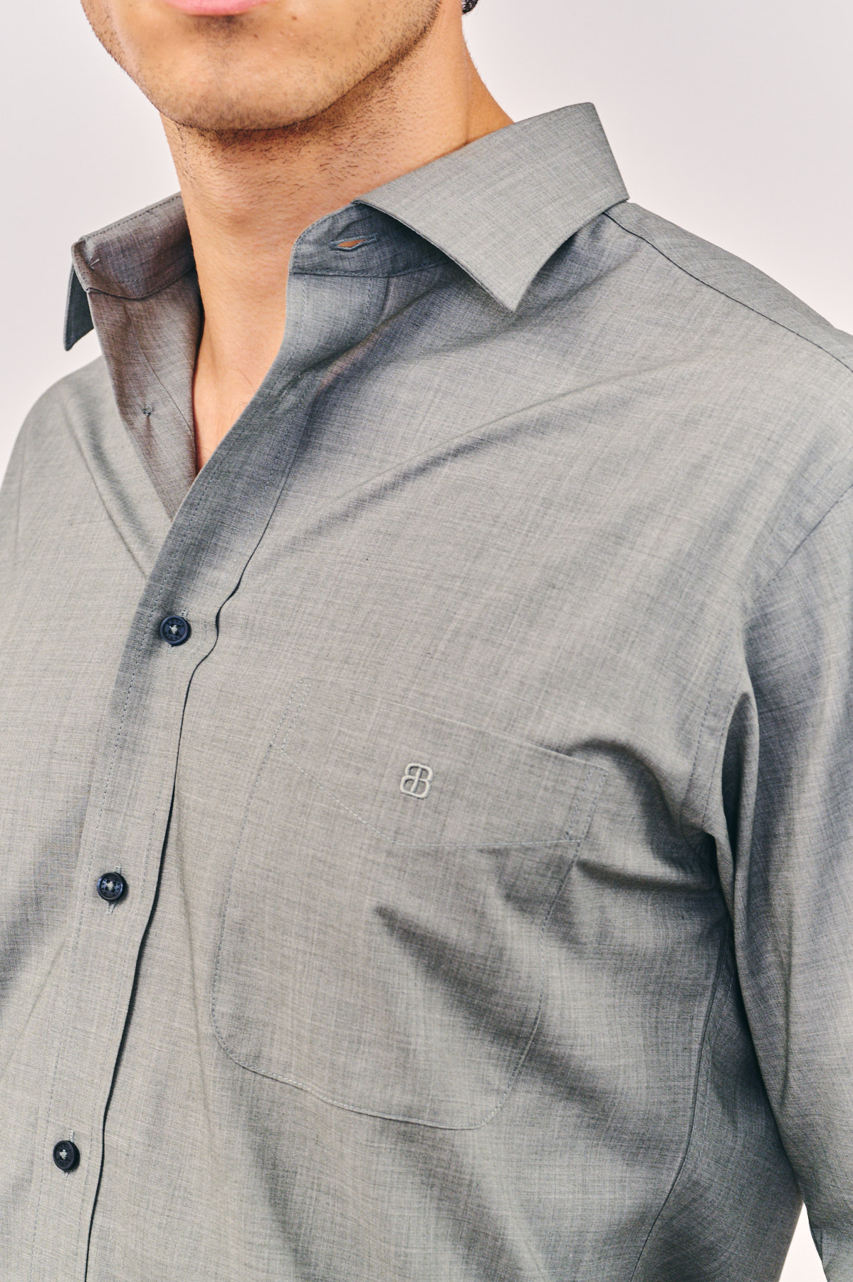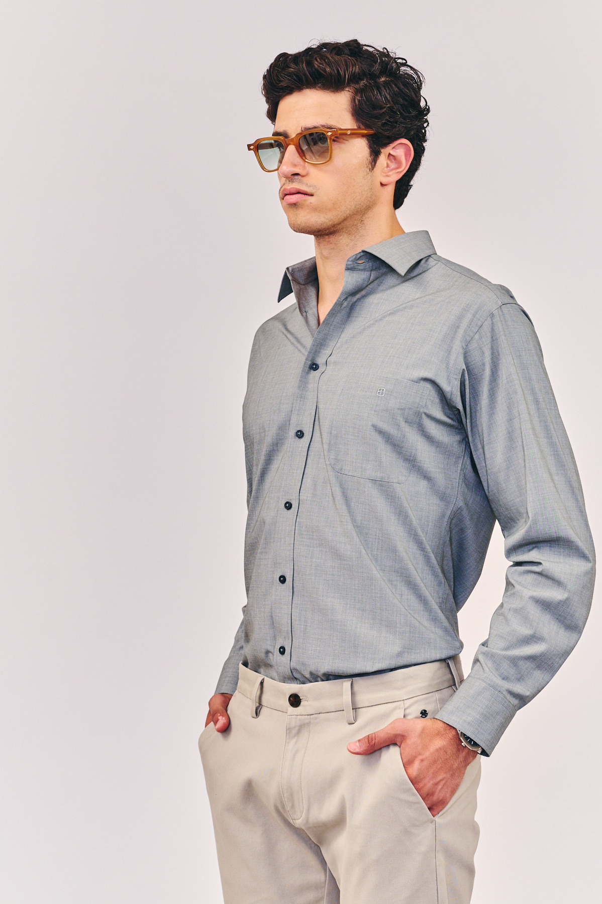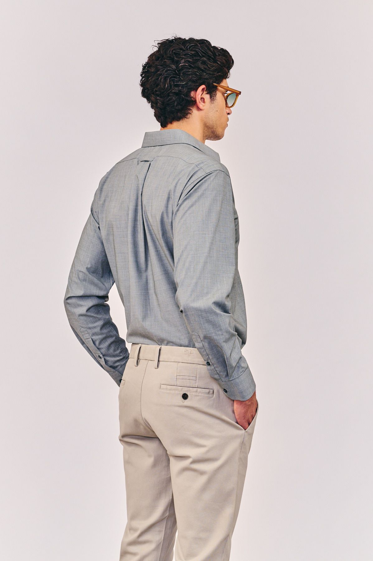 חולצה מכופתרת בגזרה Classic, שרוול ארוך, עם כיס וקפל בגב. בד מלאנז’ עם מגע נעים – קלה לגיהוץ.