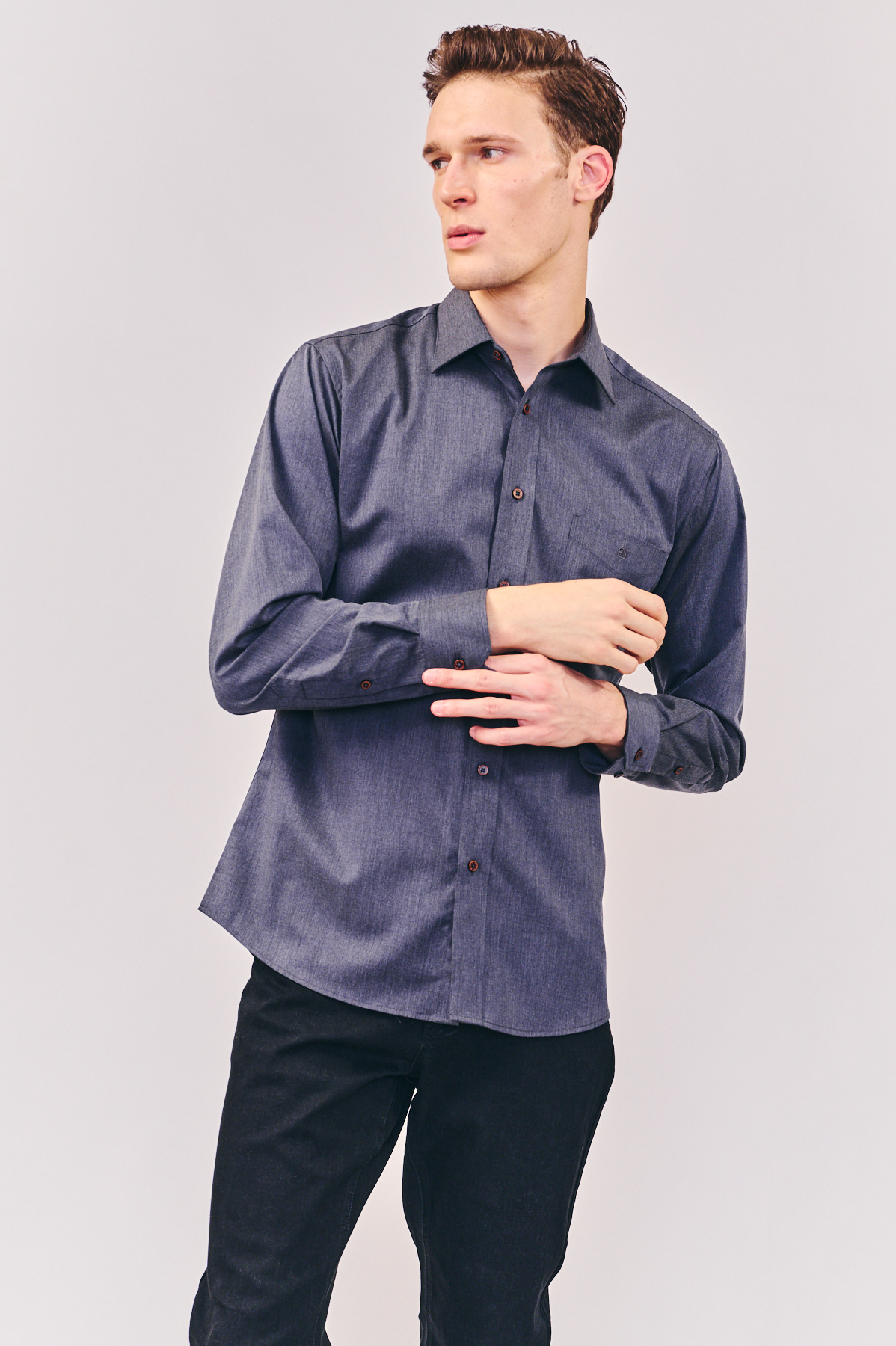חולצת מיקס במבוק בגזרה Classic, שרוול ארוך, עם כיס וקפל בגב. בד מלאנז’ עם מגע נעים – קלה לגיהוץ.