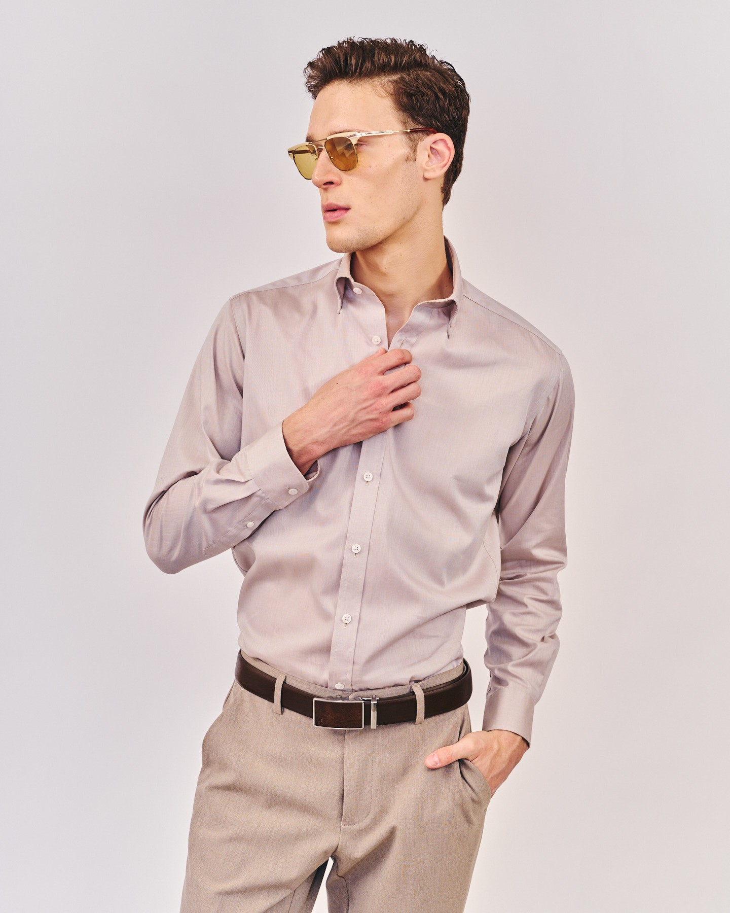חולצת אוקספורד סטייל, בד “”איזי קייר””- קל לגיהוץ, בגזרה רגולר ישרה המתאימה לכל מבנה גוף. שרוולים ארוכים, ללא כיס. בצבע בז’.מידת הדוגמן: M | גובה 1.80.הרכב בד: 80% כותנה, 20% פוליאסטר.