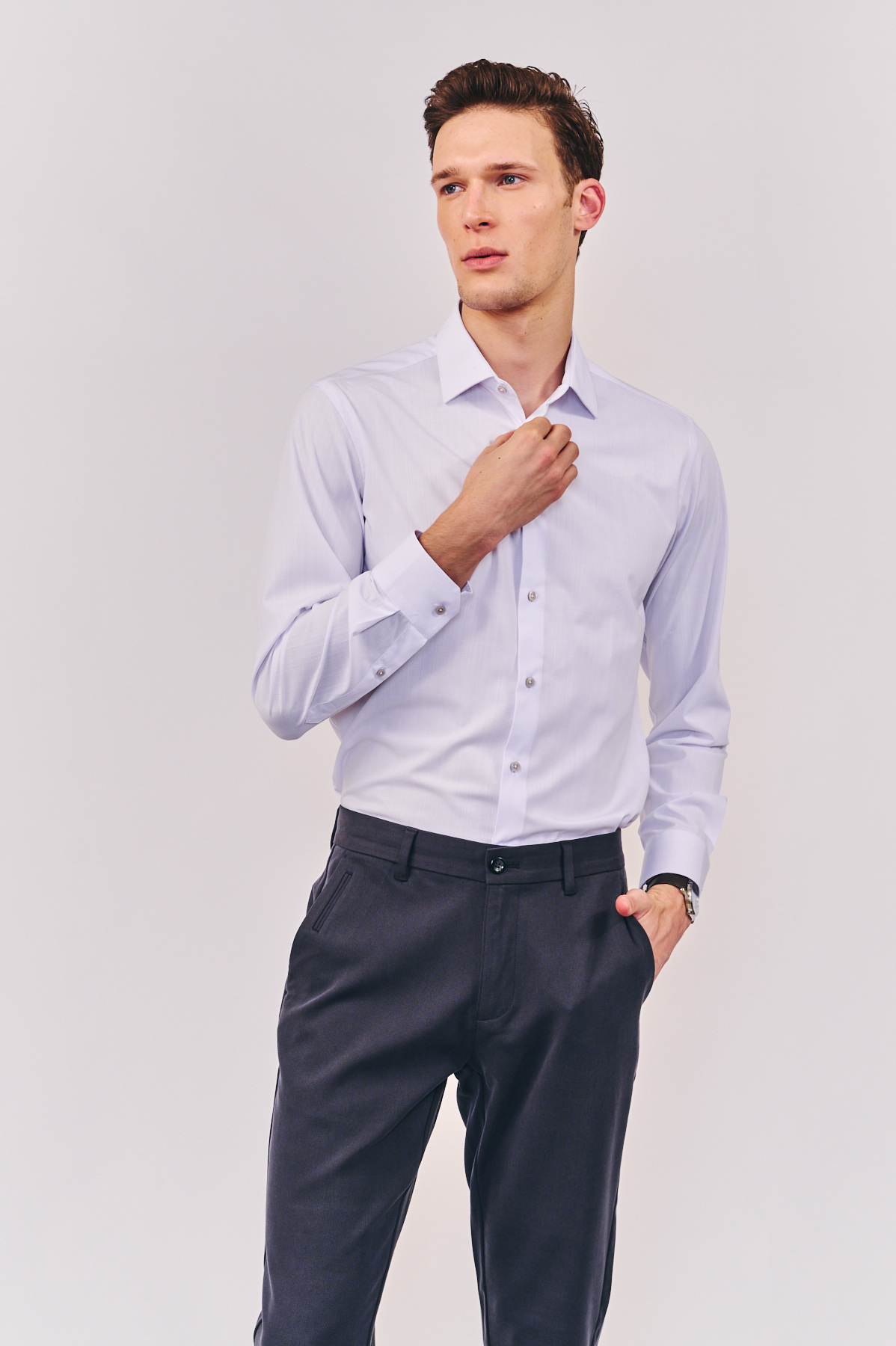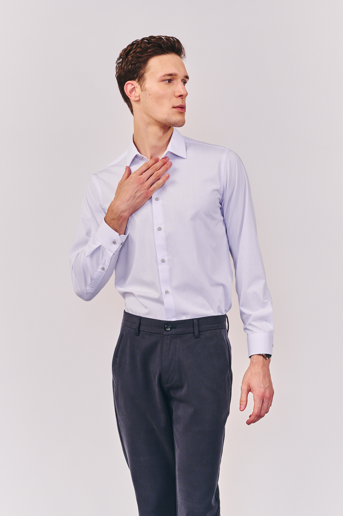 חולצת מיקס במבוק בגזרת Slim, שרוול ארוך, ללא כיס.בעלת מגע נעים ונושם. בצבע לבן.