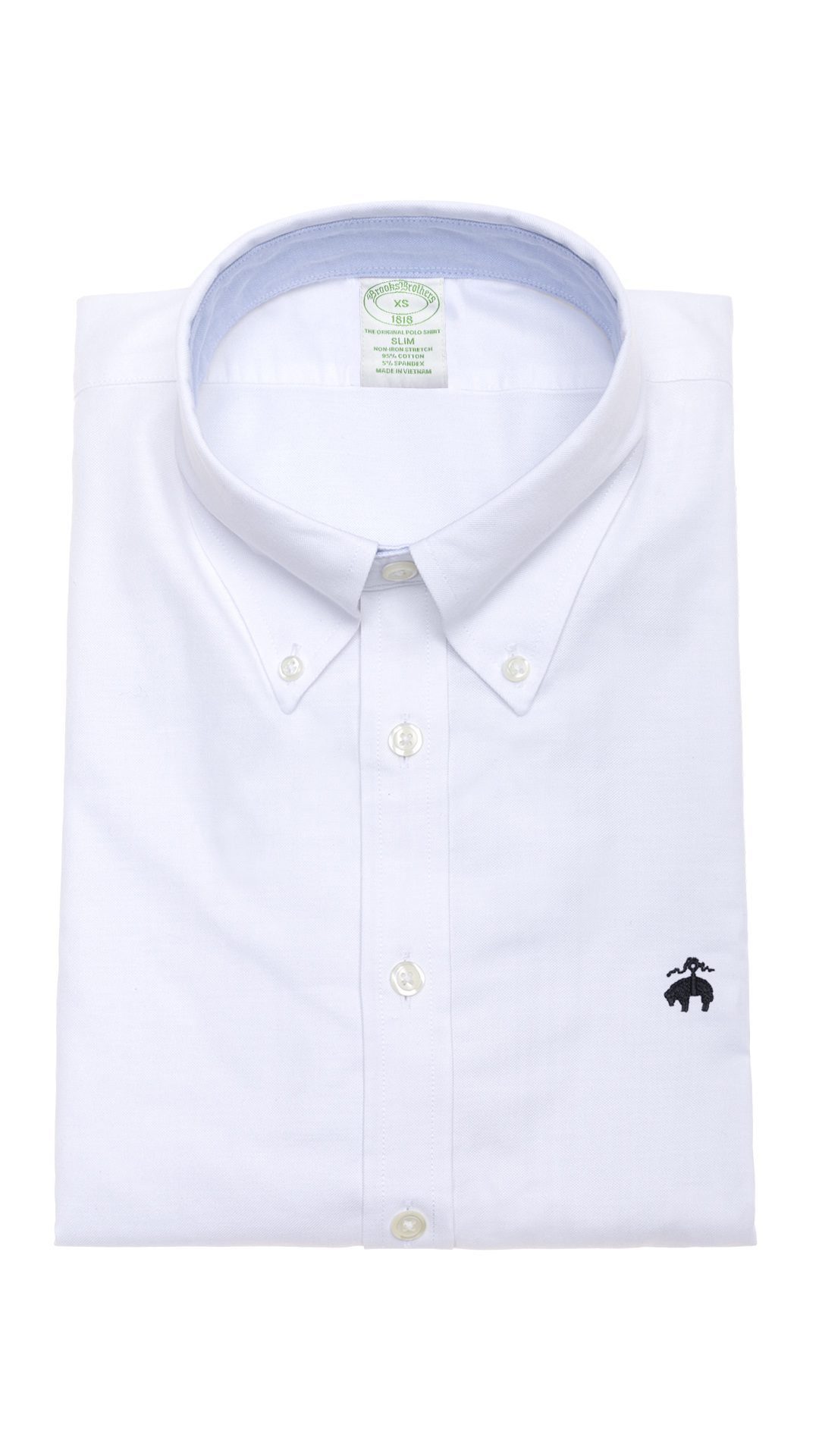 חולצת אוקספורד לגבר, בגזררה צרה, בצבע לבן עם סמל שחור, בעלת כפתורים בצווארון ושרוול ארוך. בעלת מראה נקי ומוקפד, מתאימה למשרד או לאירוע. הרכב בד: 97% כותנה, 3% ספנדקס.